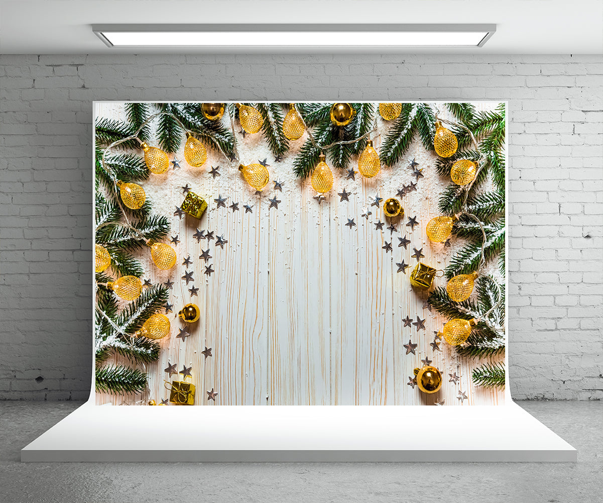 Toile de fond de branche de pin mur en bois blanc de photographie fond de Noël