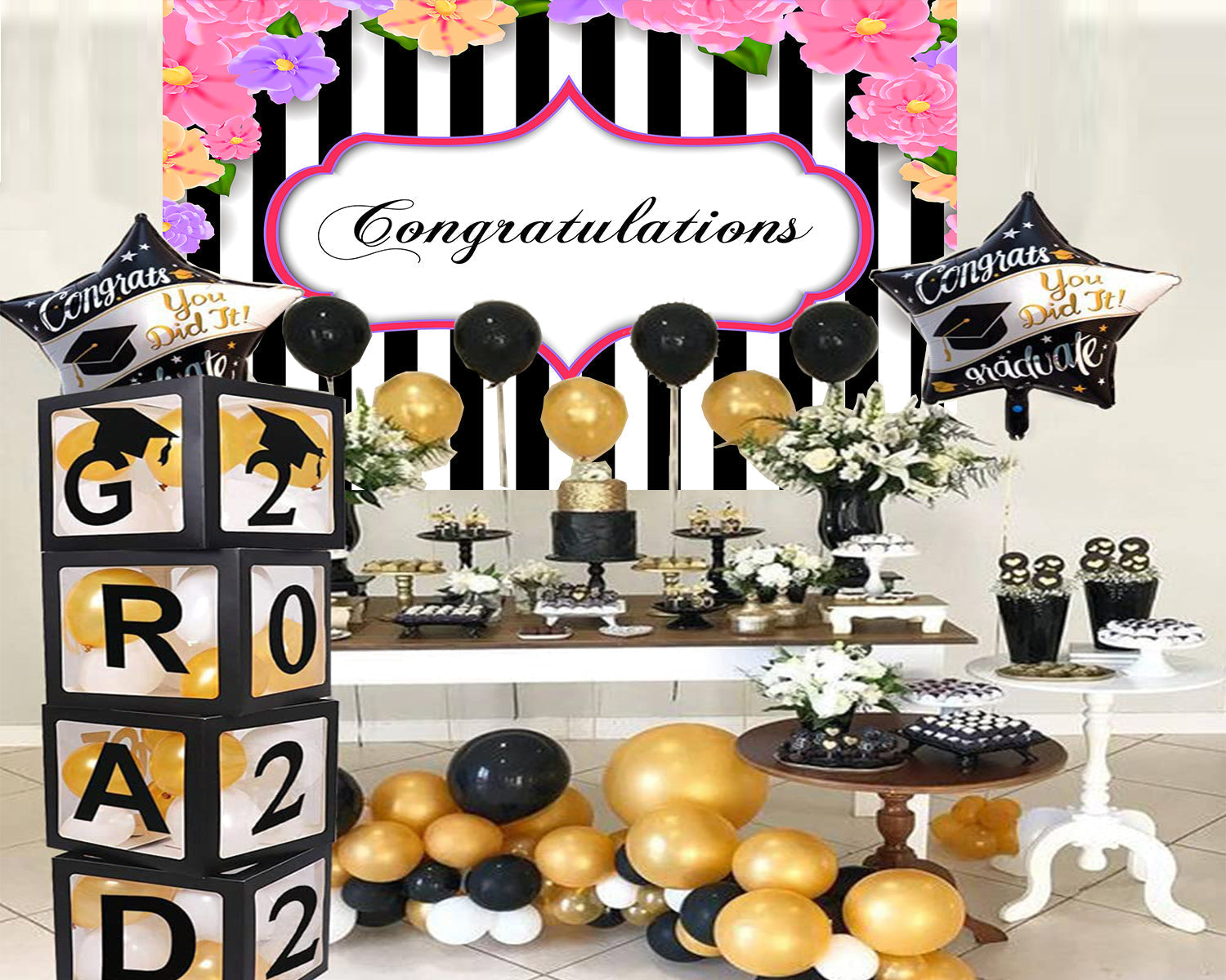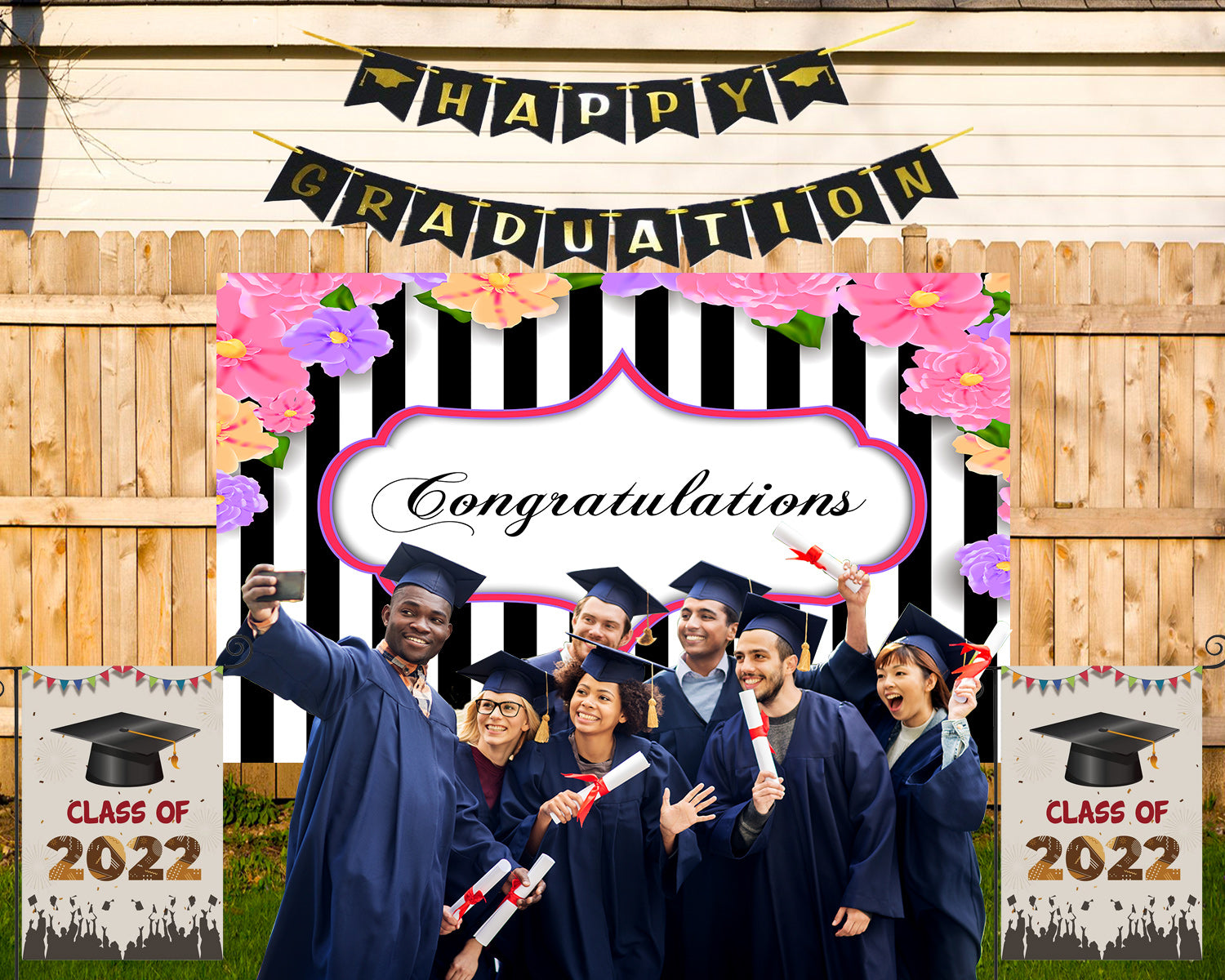 Toile de fond de célébration de remise des diplômes à rayures noires et blanches TKH1847