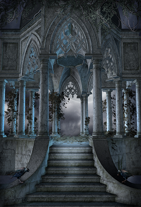 Toile de fond de chapelle gothique avec escalier pour la photographie SBH0257