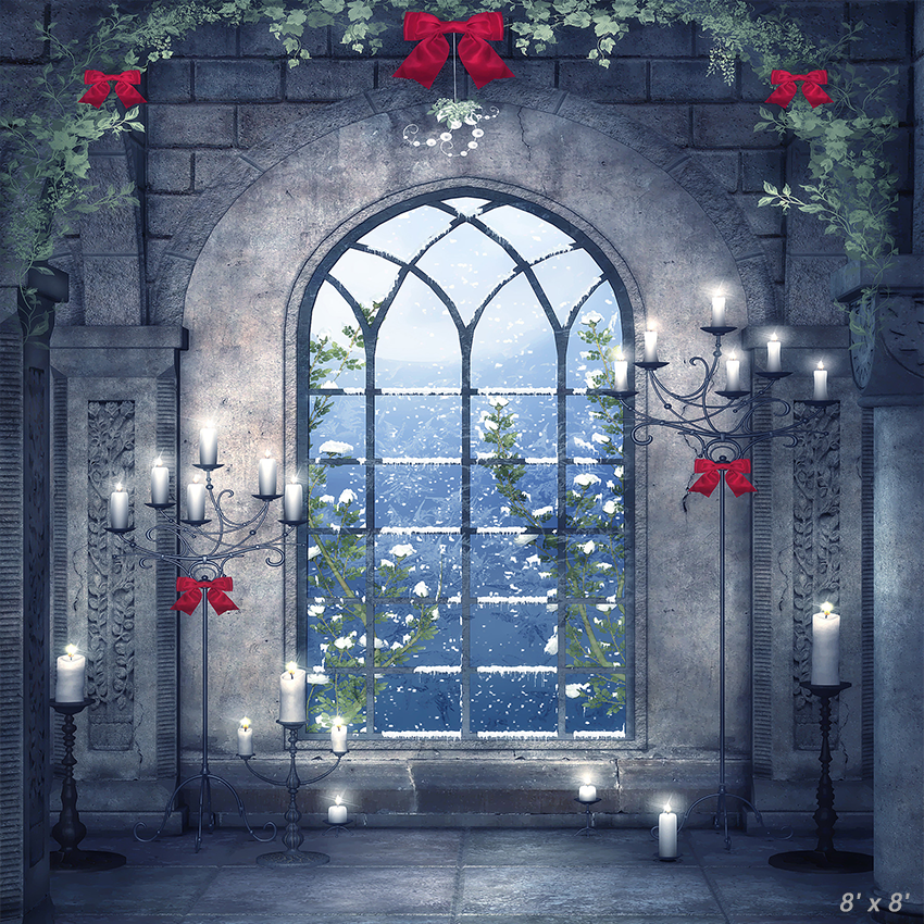Toile de fond de fenêtre congelée de scène de Noël pour la photographie SBH0286
