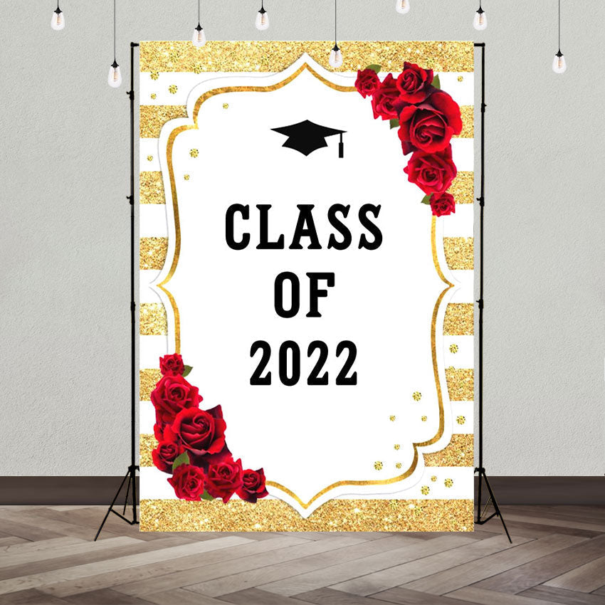 Toile de fond de fête de remise des diplômes à rayures et roses pour la photographie décorations de fête SBH0085