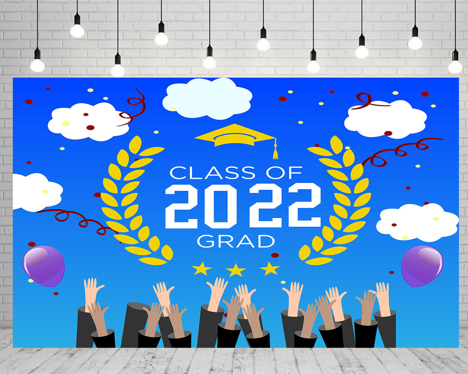 Toile de fond de fête de remise des diplômes pour les décorations ciel bleu et nuages blancs de photographie TKH1873