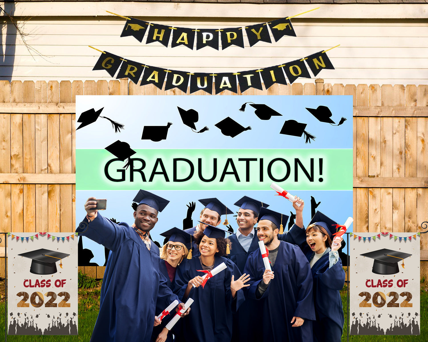 Toile de fond de graduation bleu ciel tableau noir décoration lycée fond de collège pour la photographie TKH1882