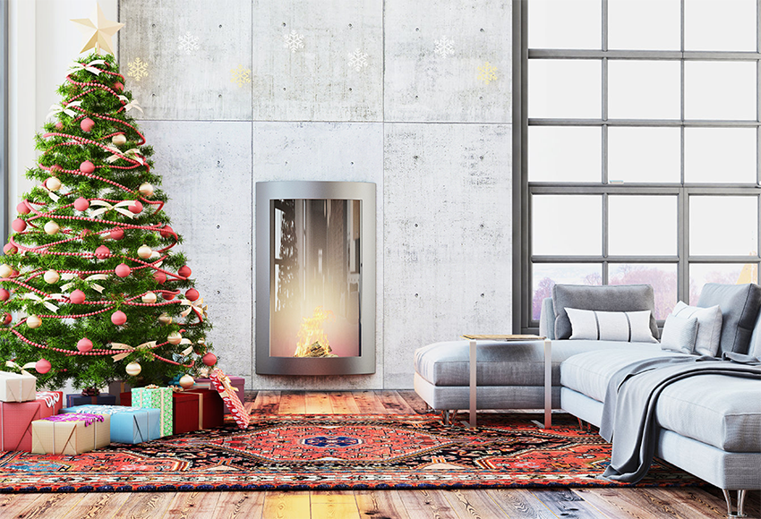 Toile de fond de mur blanc fenêtre sofa sapin de Noël
