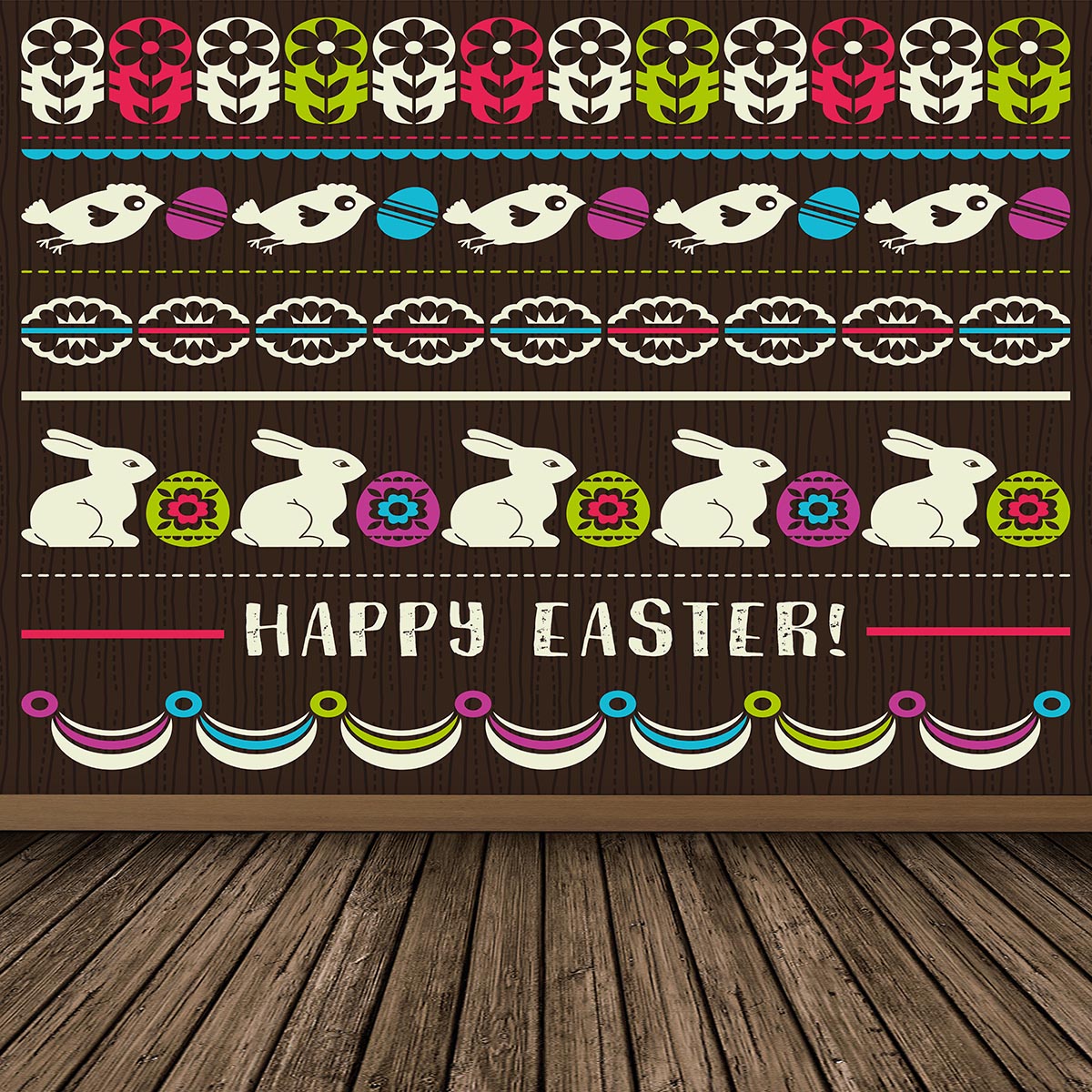 Toile de fond de mur brun lapin joyeuses Pâques de plancher de bois pour le studio