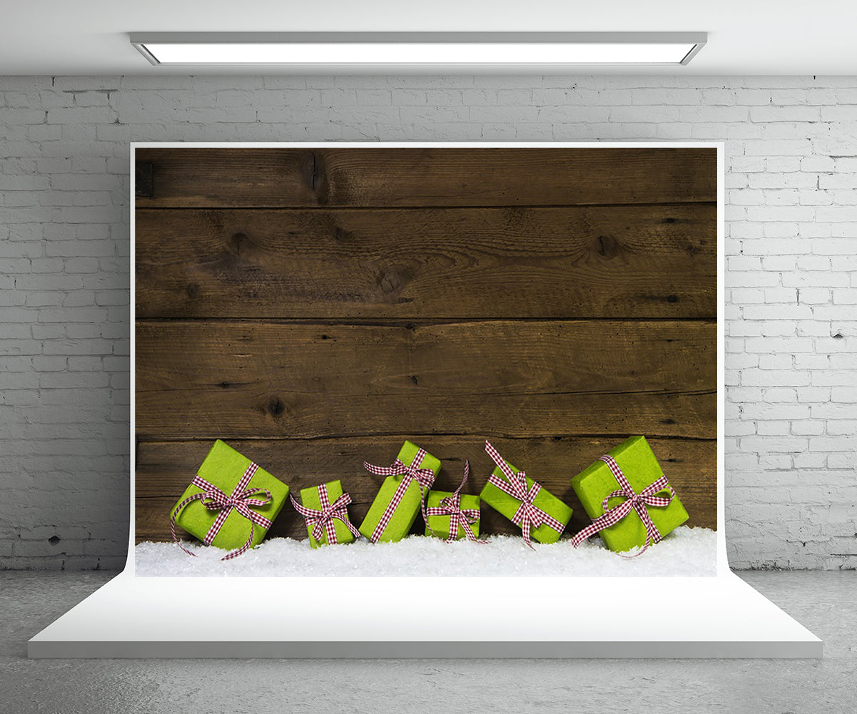 Toile de fond de photo de mur en bois gris foncé de cadeau de Noël