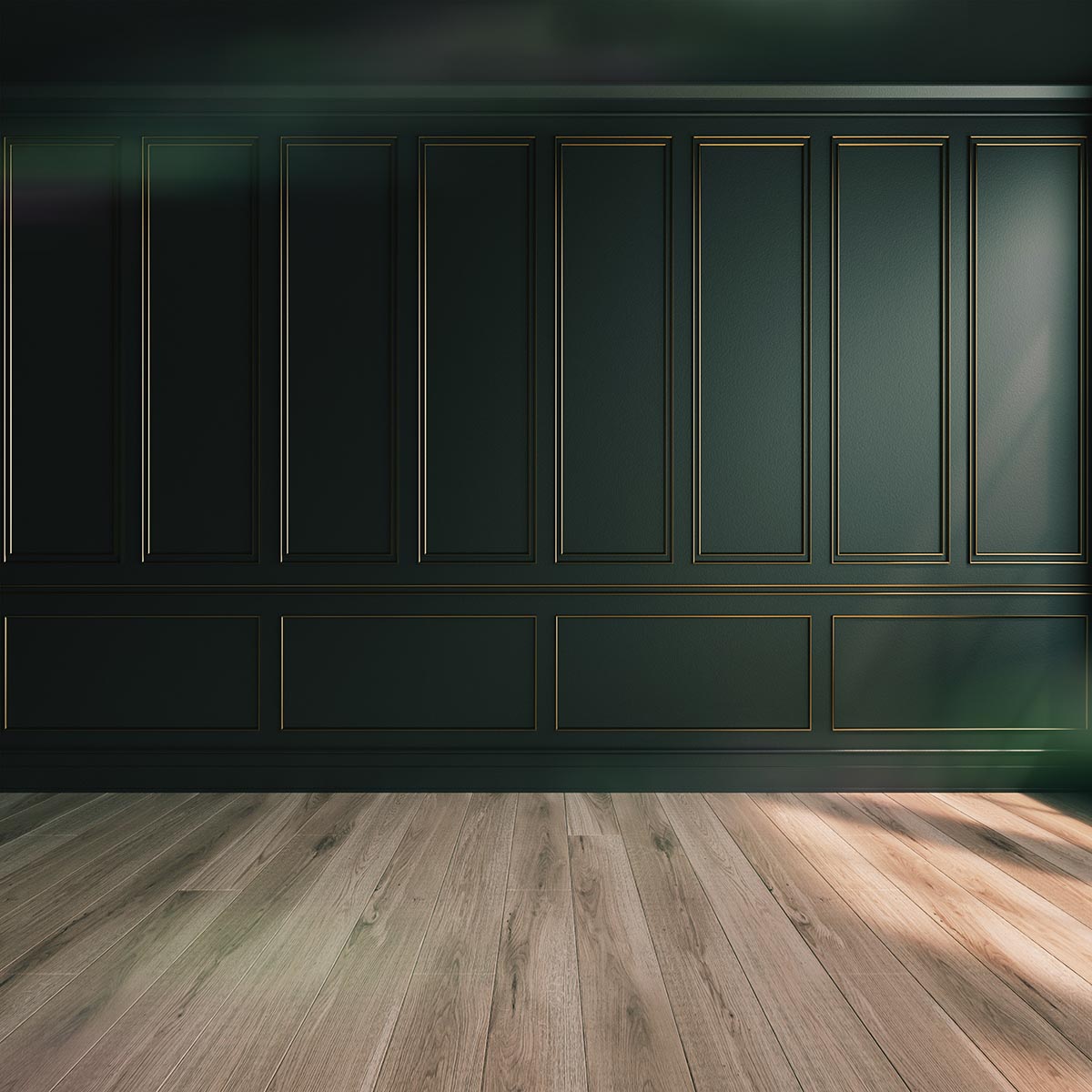 Toile de fond de photographie de mariage de plancher de bois de mur de cadre d'or vert foncé