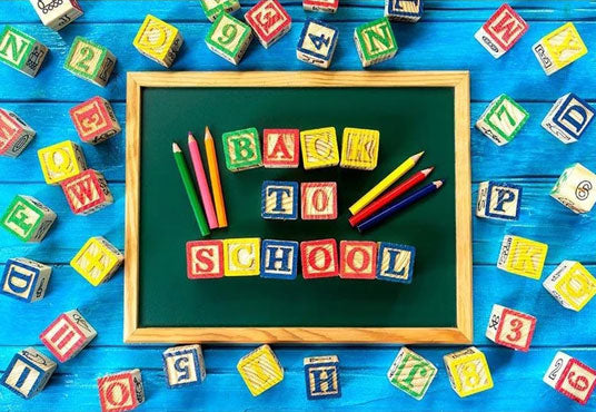 Toile de fond de plancher en bois bleu retour à l'école pour la photographie