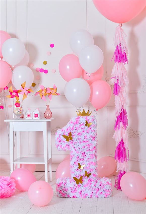 Toile de fond de thème rose 1er anniversaire bébé décors de papillons