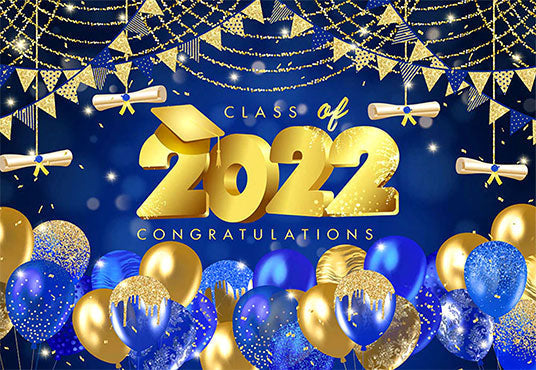 Toile de fond fond de paillettes bleu et doré 2022 décorations de fête de remise des diplômes SBH0103